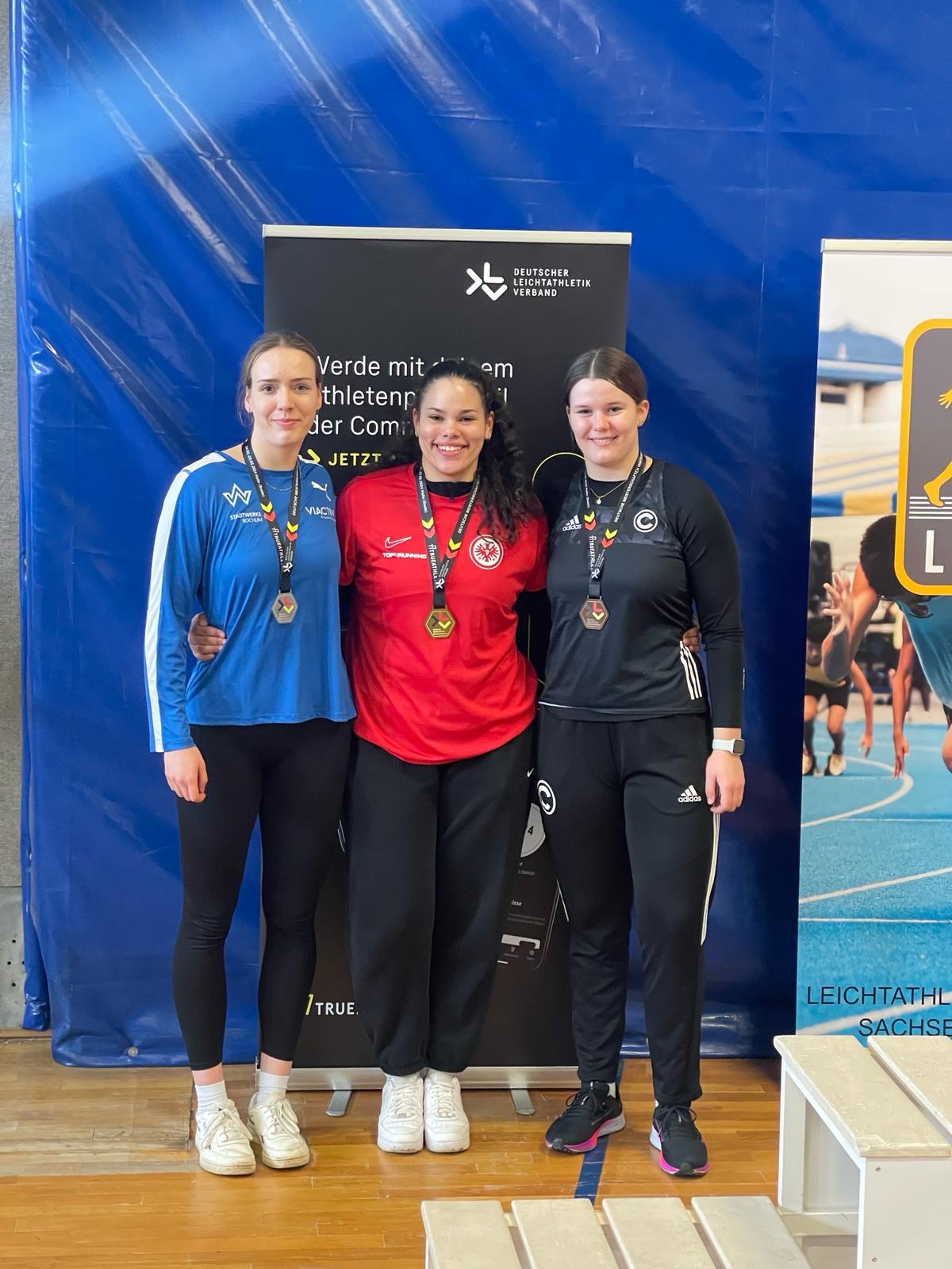 Bei den Frauen sicherte sich Samantha Borutta (Eintracht Frankfurt) den klaren Sieg. Schon mit ihrem ersten Versuch auf 66,30m hätte sie die Goldmedaille gewonnen, ließ aber im letzten Versuch noch 67,38m folgen. Mit ihr auf dem Treppchen standen Michelle Döpke (TSV Bayer Leverkusen, Silber) und Aileen Kuhn (LAZ Ludwigsburg, Bronze). Im Hammerwurf der weiblichen U18 zeigte Leni Sommerlade (ESV Jahn Treysa) einen guten Wettkampf und wurde mit 49,10m Siebte.