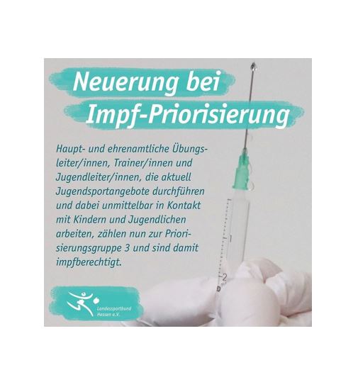 Impfpriorisierung für Hauptberufliche oder Ehrenamtliche in der sportlichen Jugendarbeit